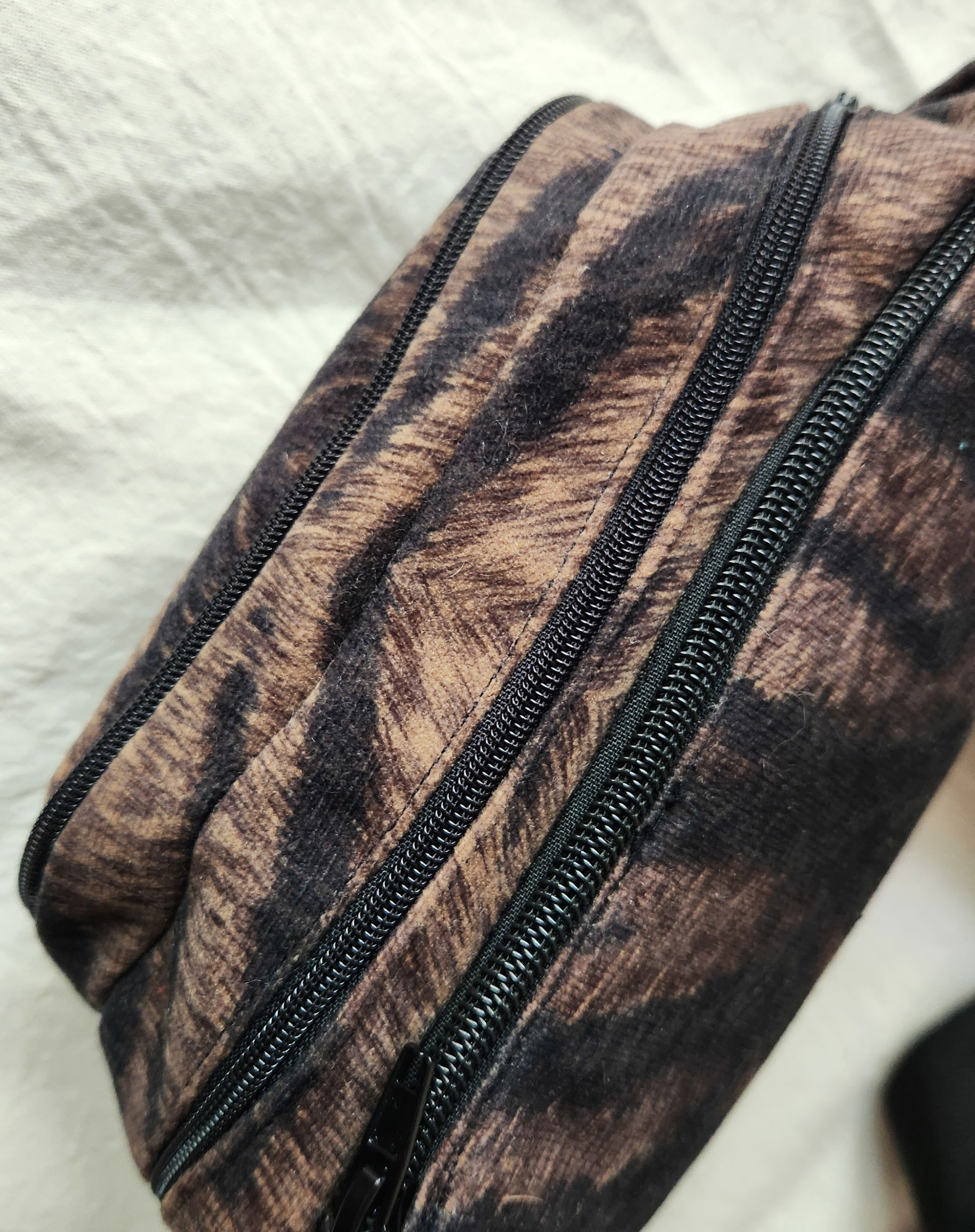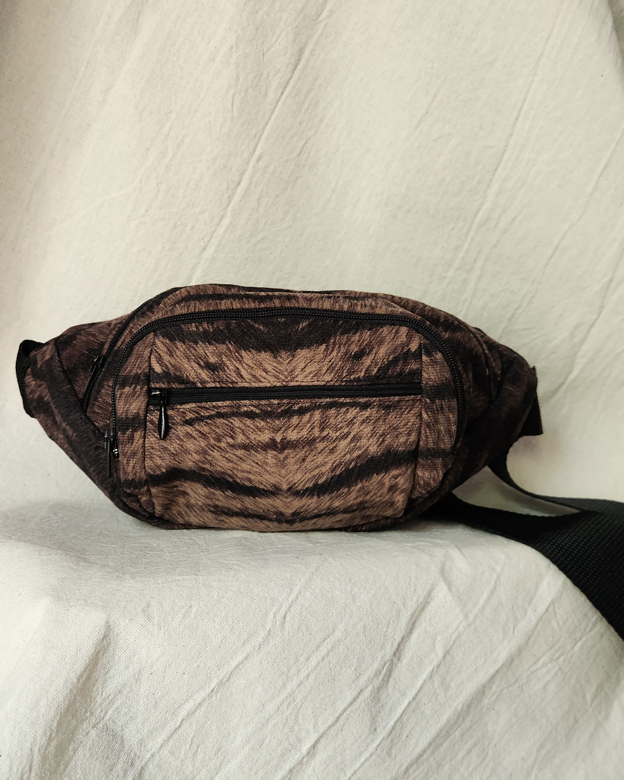 Esta riñonera atigrada en tonos tierra es carácter, funcionalidad y una historia que no se repite.