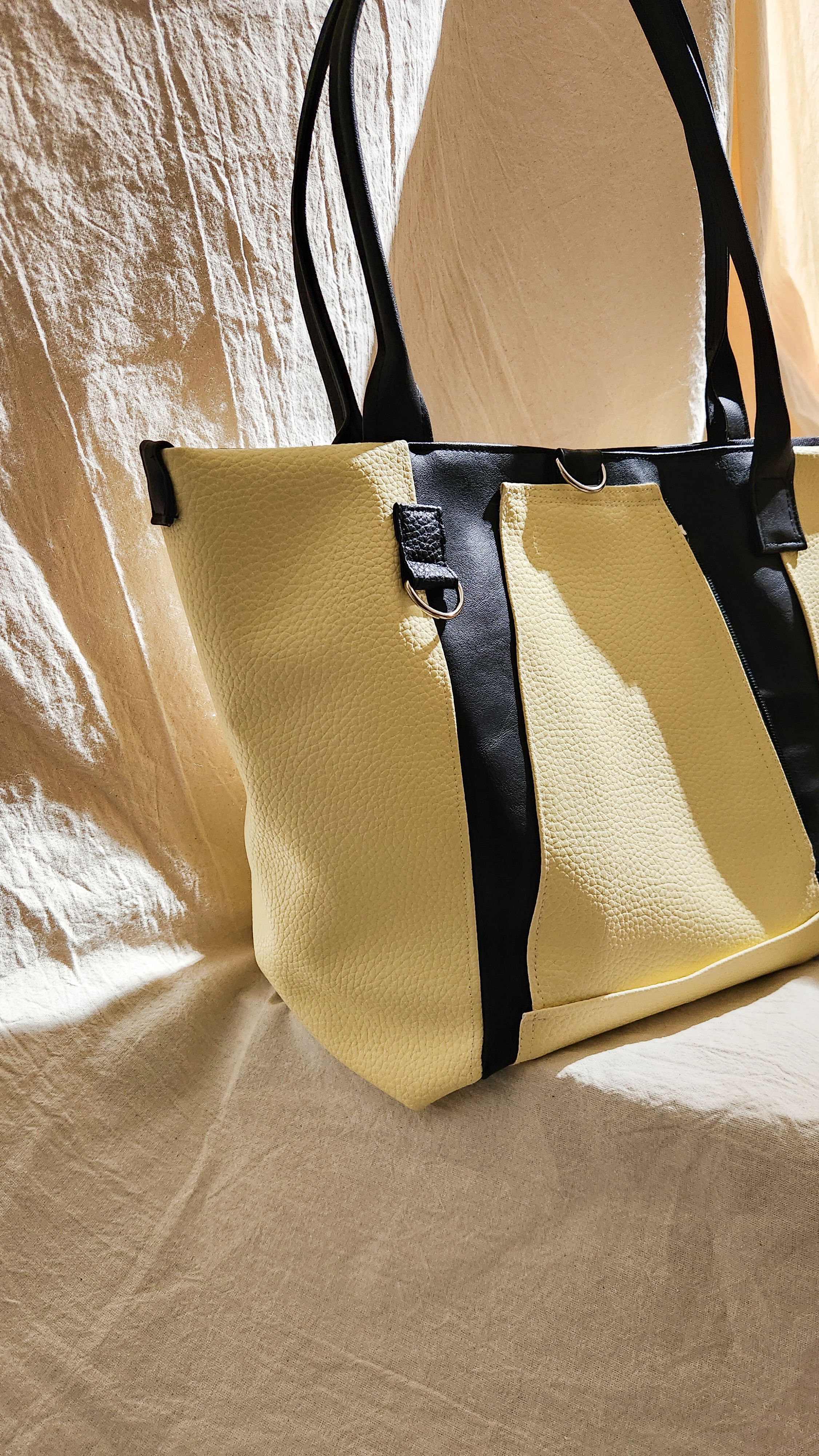 #CarteraTote #BolsoUniversitario #CarteraParaNotebook #BolsoNegroYAmarillo #BolsoFuncional #CarteraDeHombroGrande #CatarsiPragma #BolsoBicolor