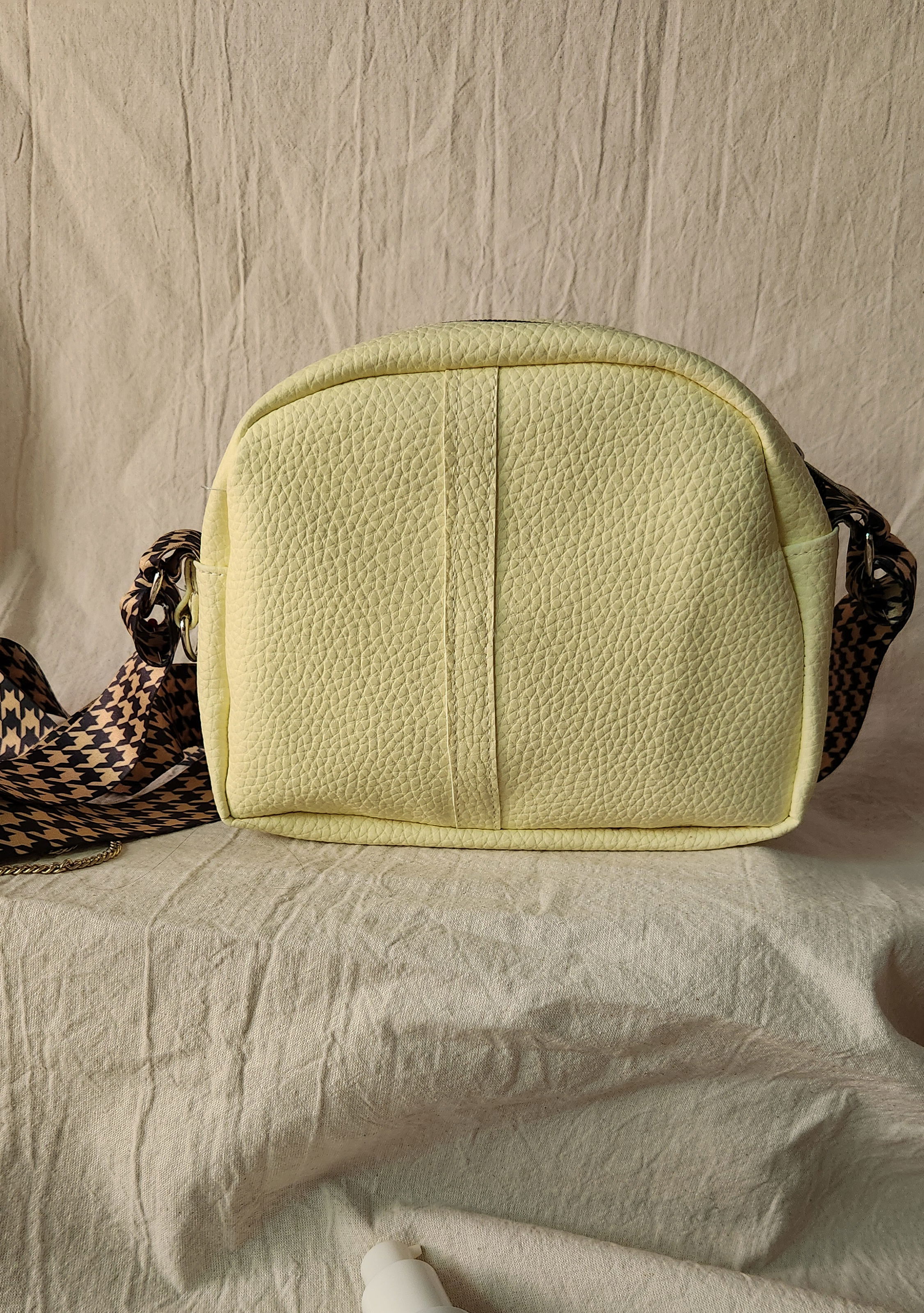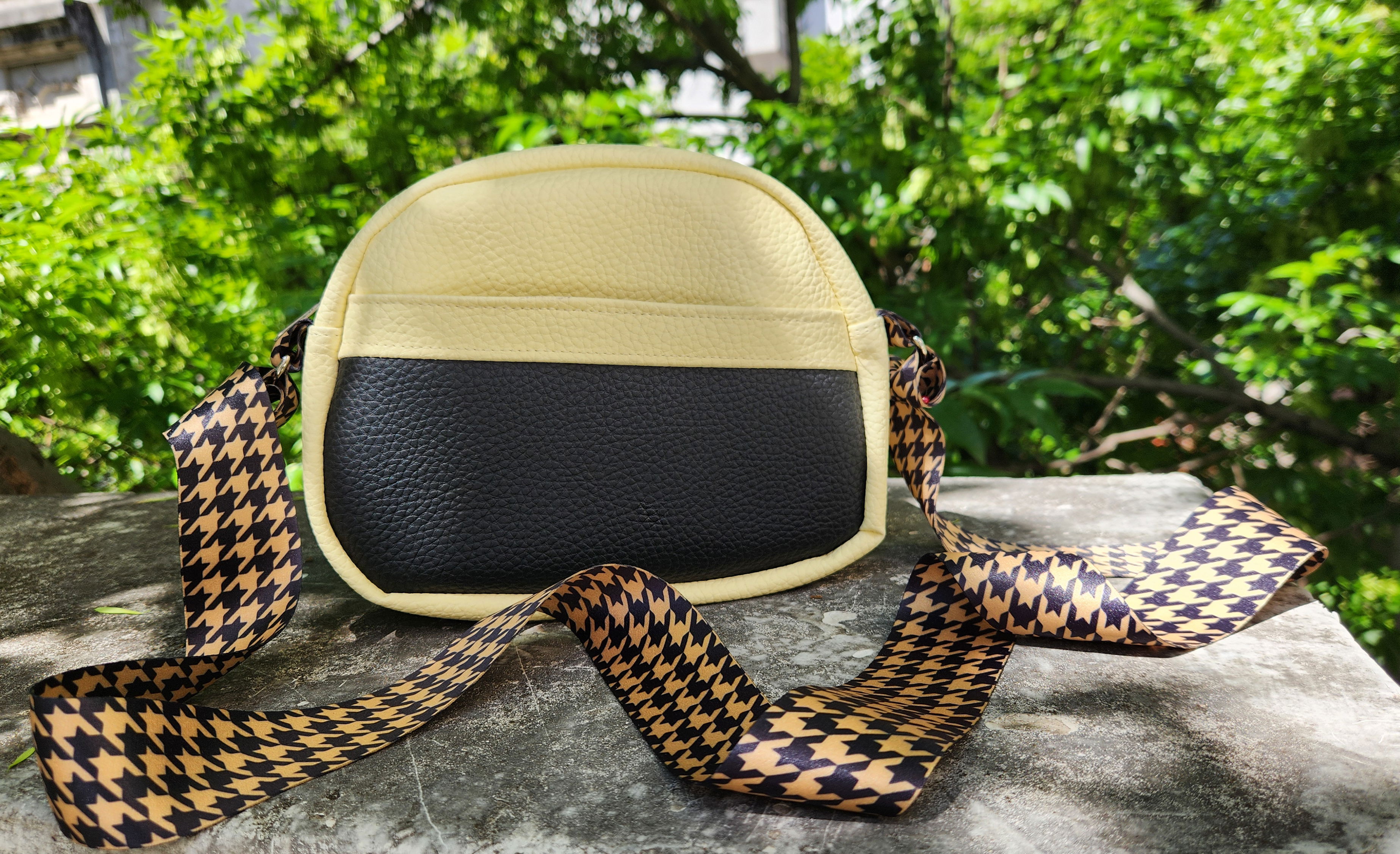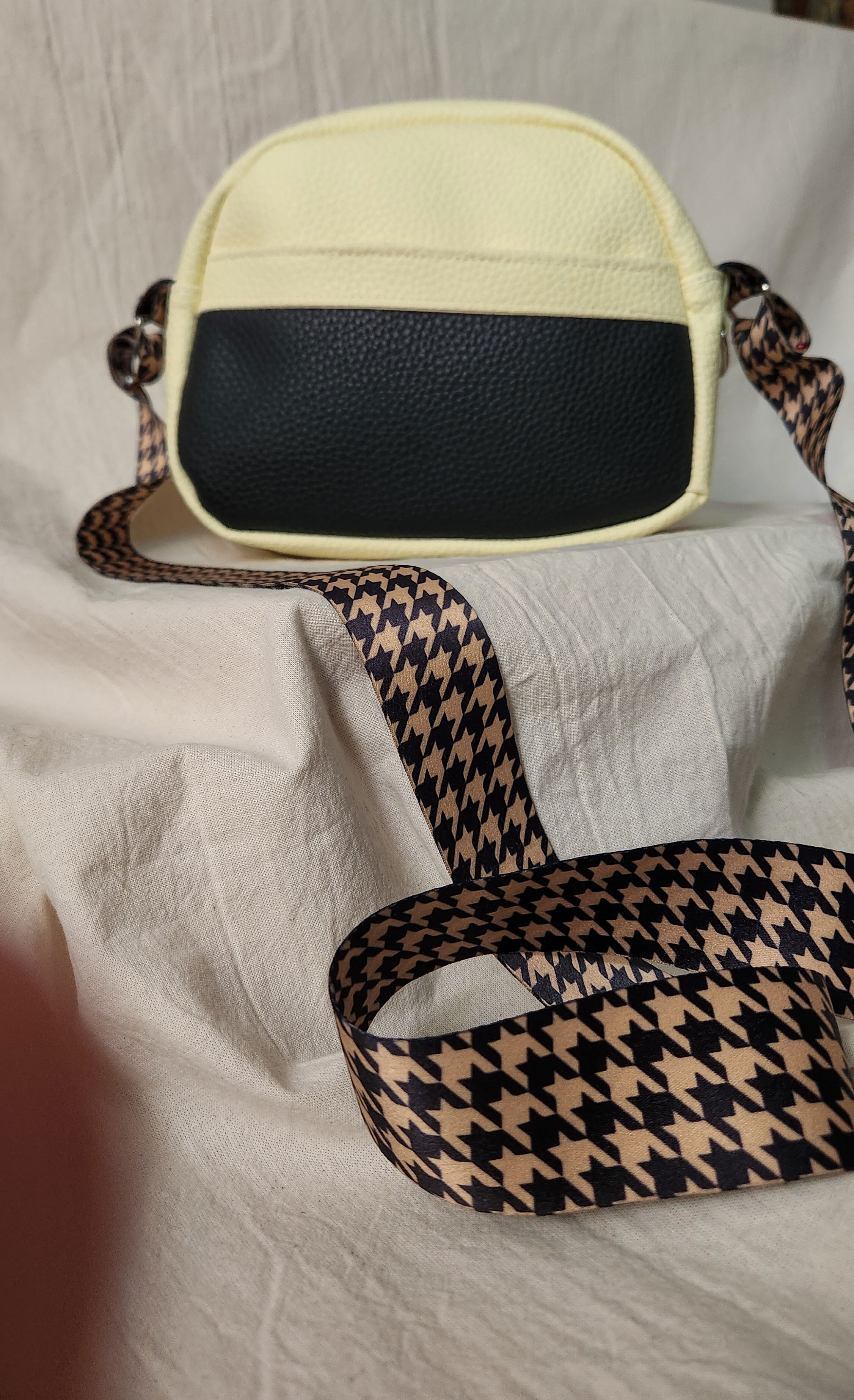 #BandoleraCruzada #CarteraCrossbody #BolsoCompacto #CarteraConBolsilloAsimétrico #BandoleraRegulable #BolsoAmarilloBicolor #CatarsiPragma #BandoleraFuncional
