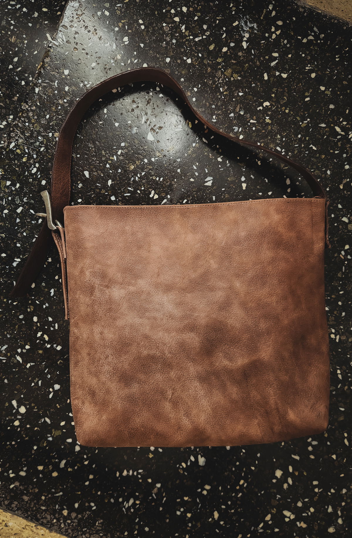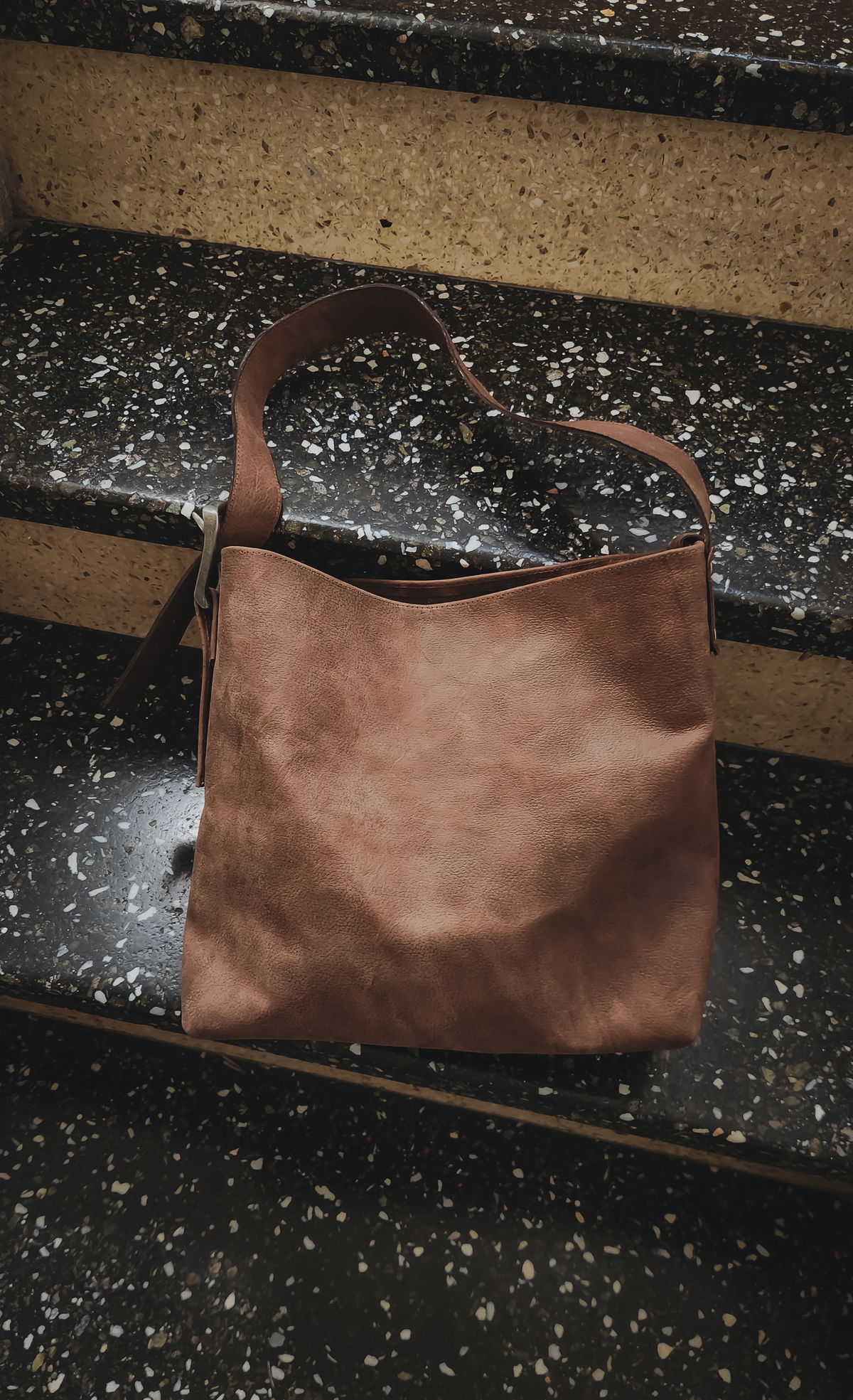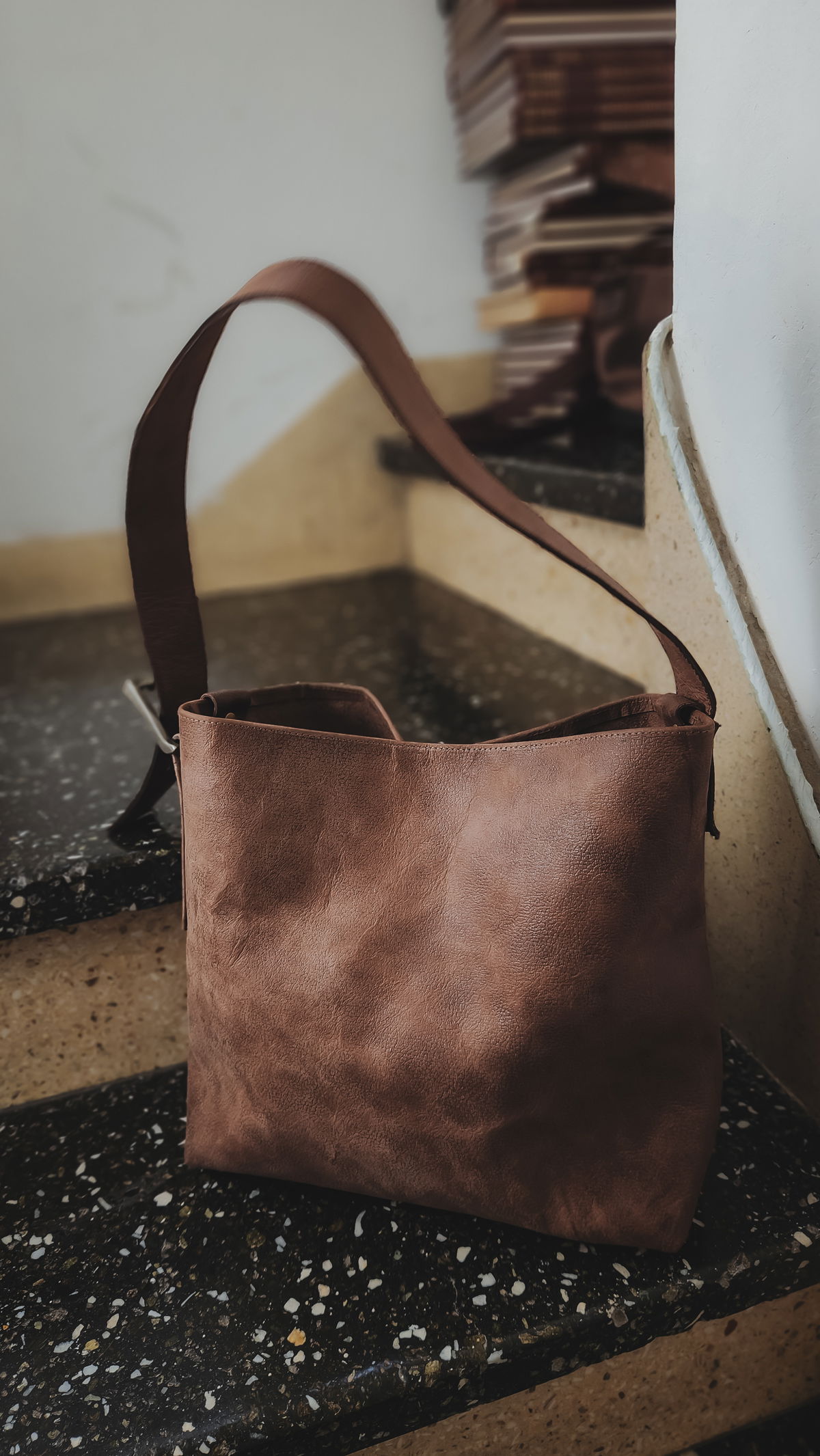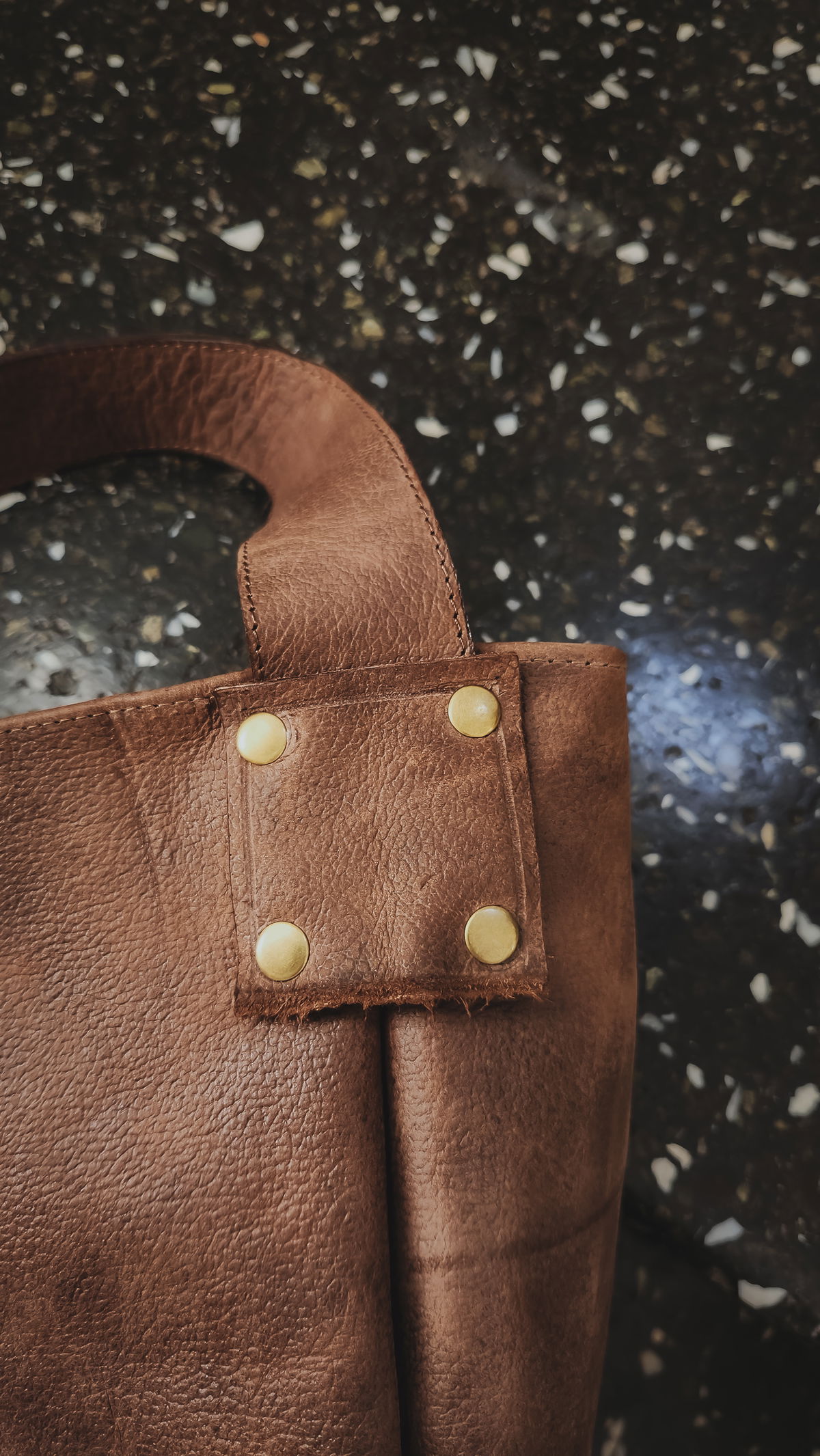 Una forma que rinde homenaje a la talabartería tradicional con una visión contemporánea. Su tono marrón de curtido natural transmite calidez y carácter bajo la luz del día, mientras los detalles en bronce y metal en la hebilla aportan sobriedad y un acabado artesanal sobre la materia.