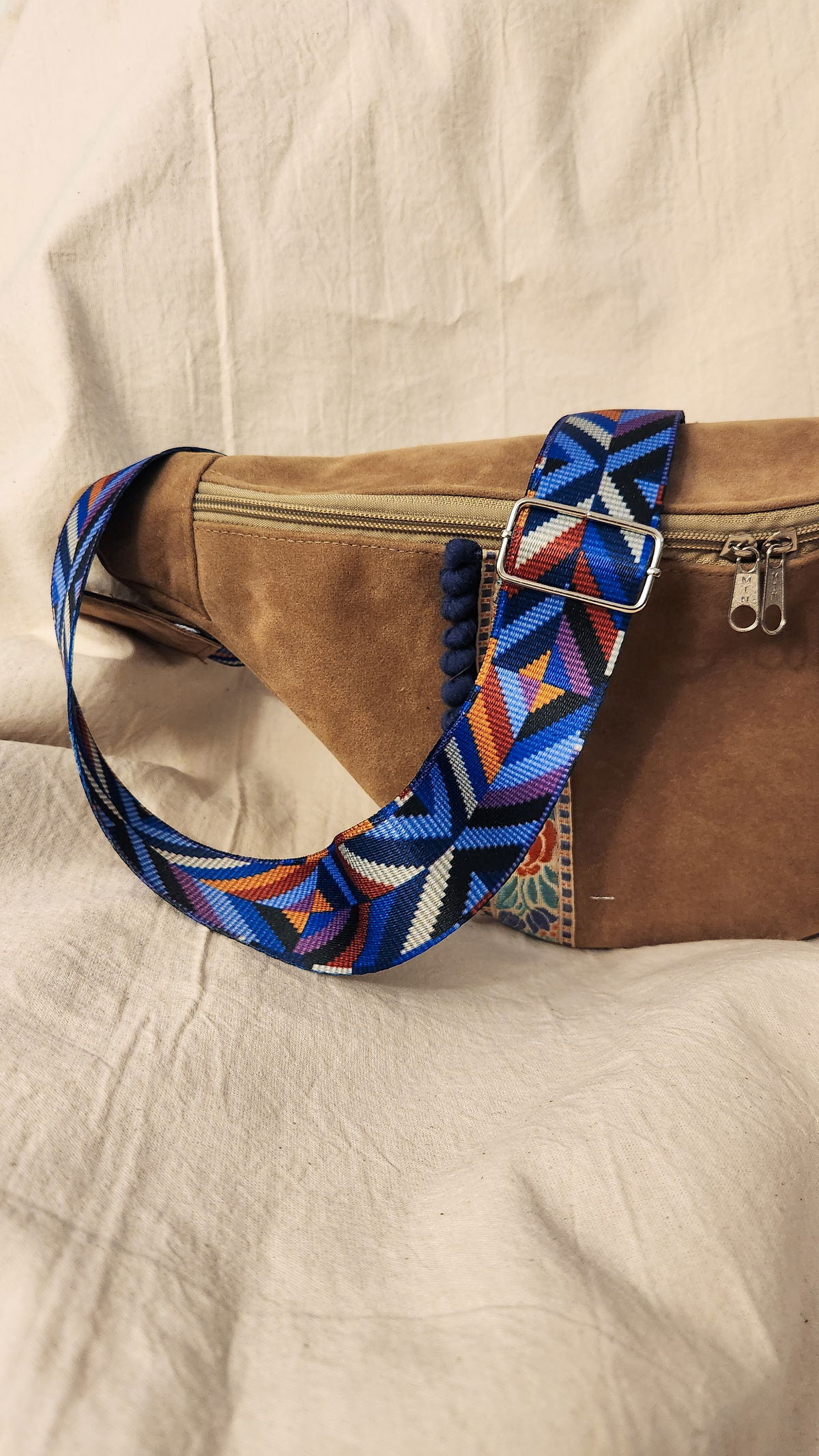 Esta riñonera funcional combina organización, estilo y un toque artesanal. Confeccionada en símil gamuza suave en tono malva o lila, es cómoda, liviana y perfecta para tus días en movimiento.