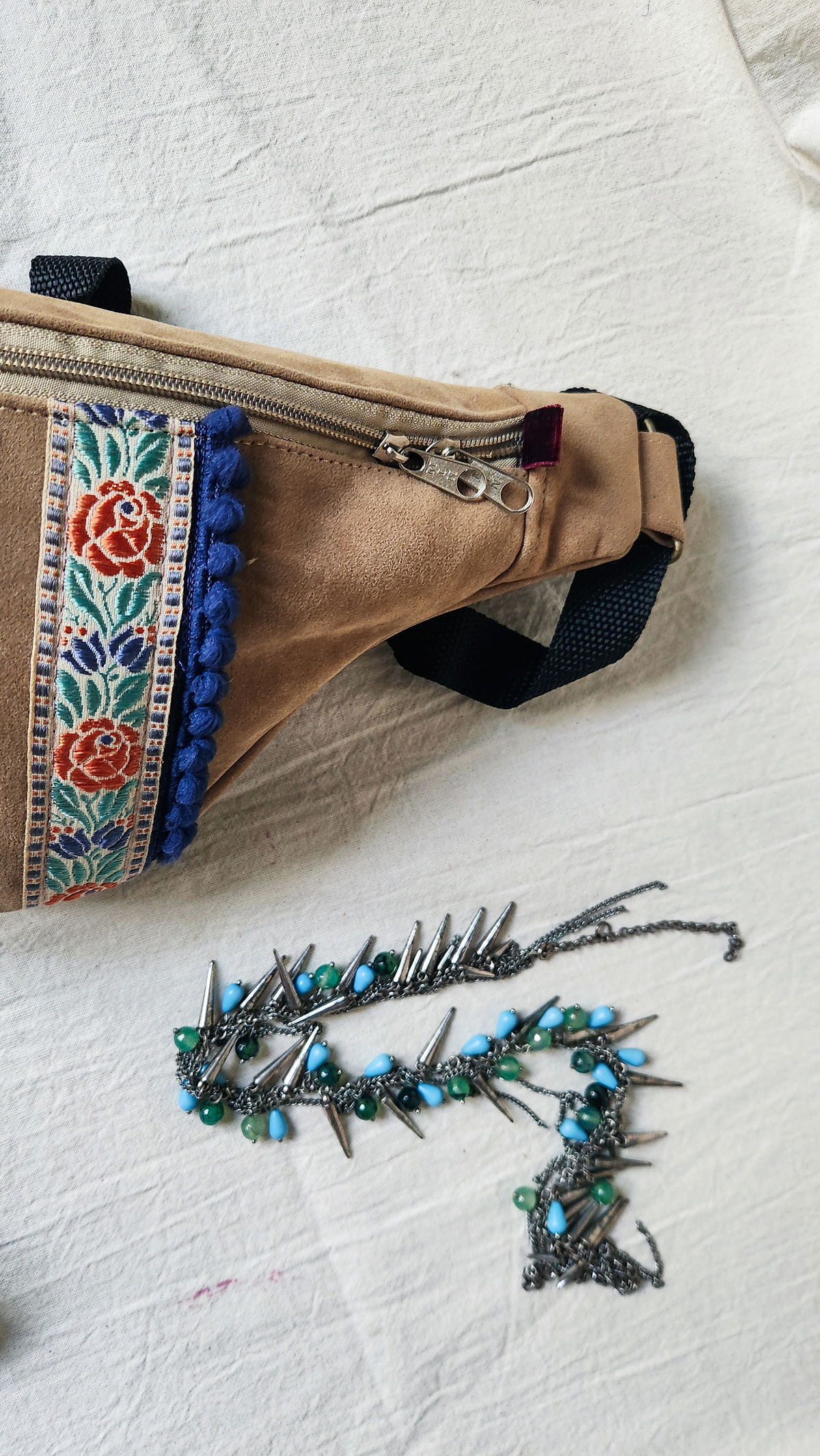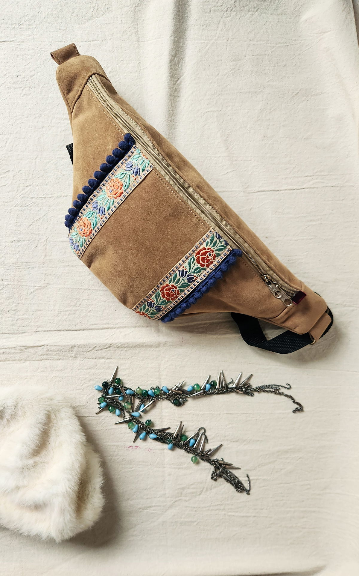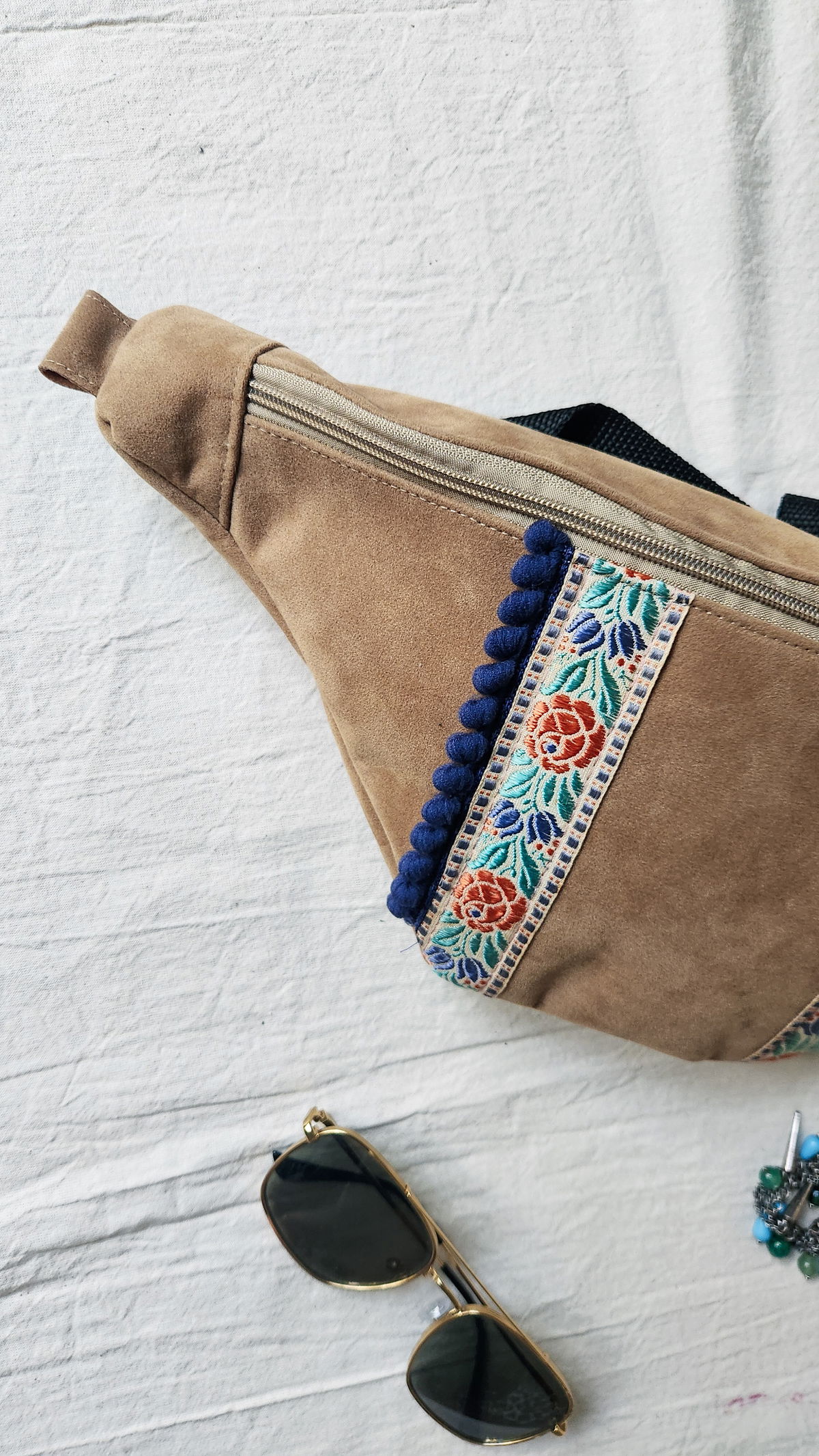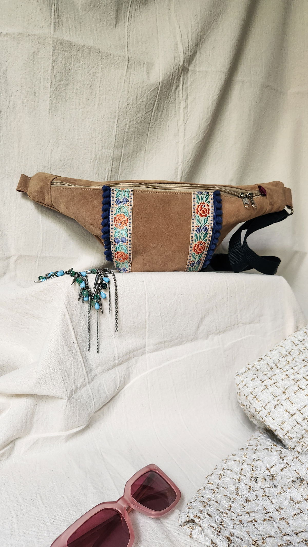 Riñonera Rosa Catarsi – Boho Chic / Galón Floral Vintage