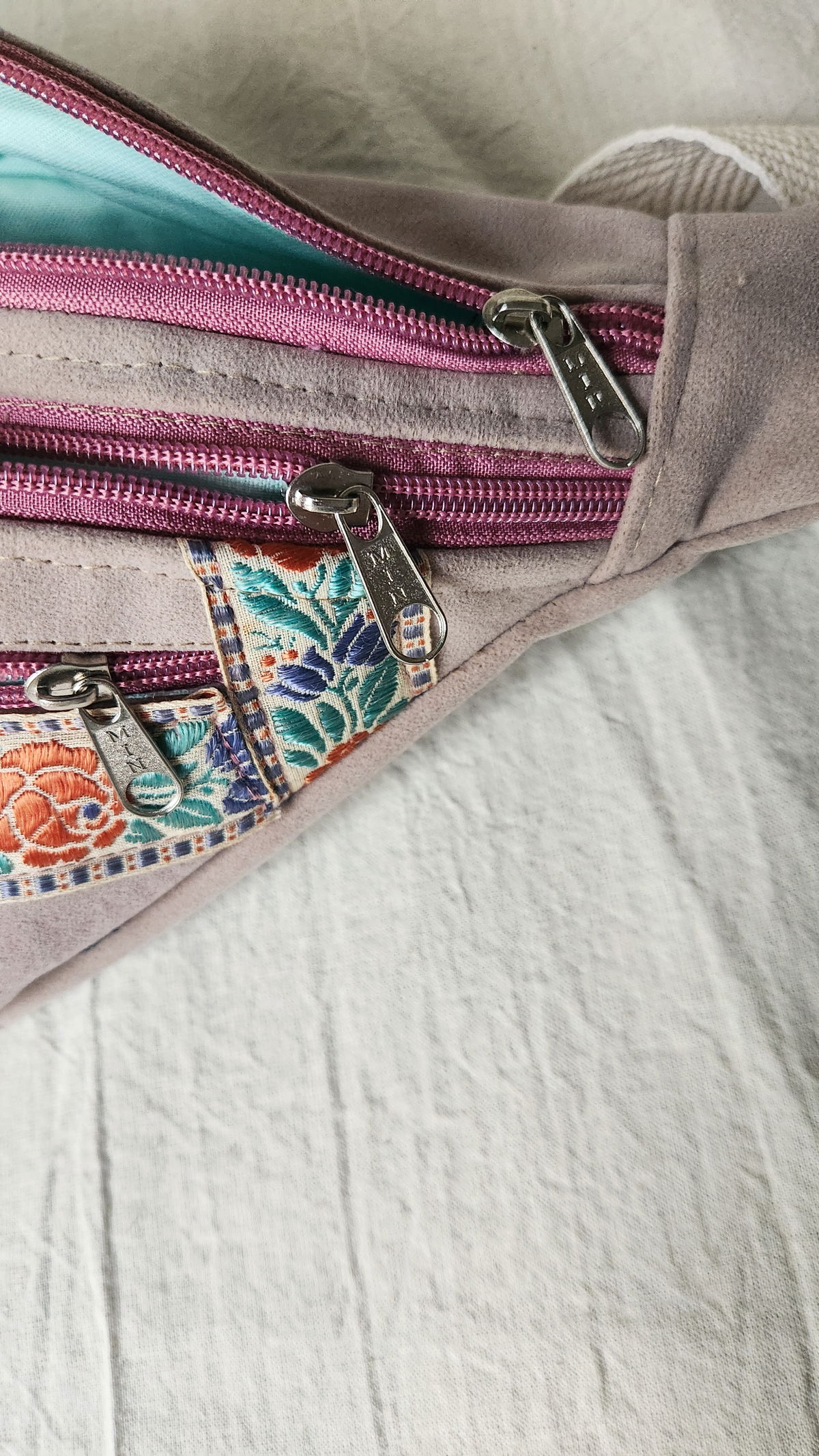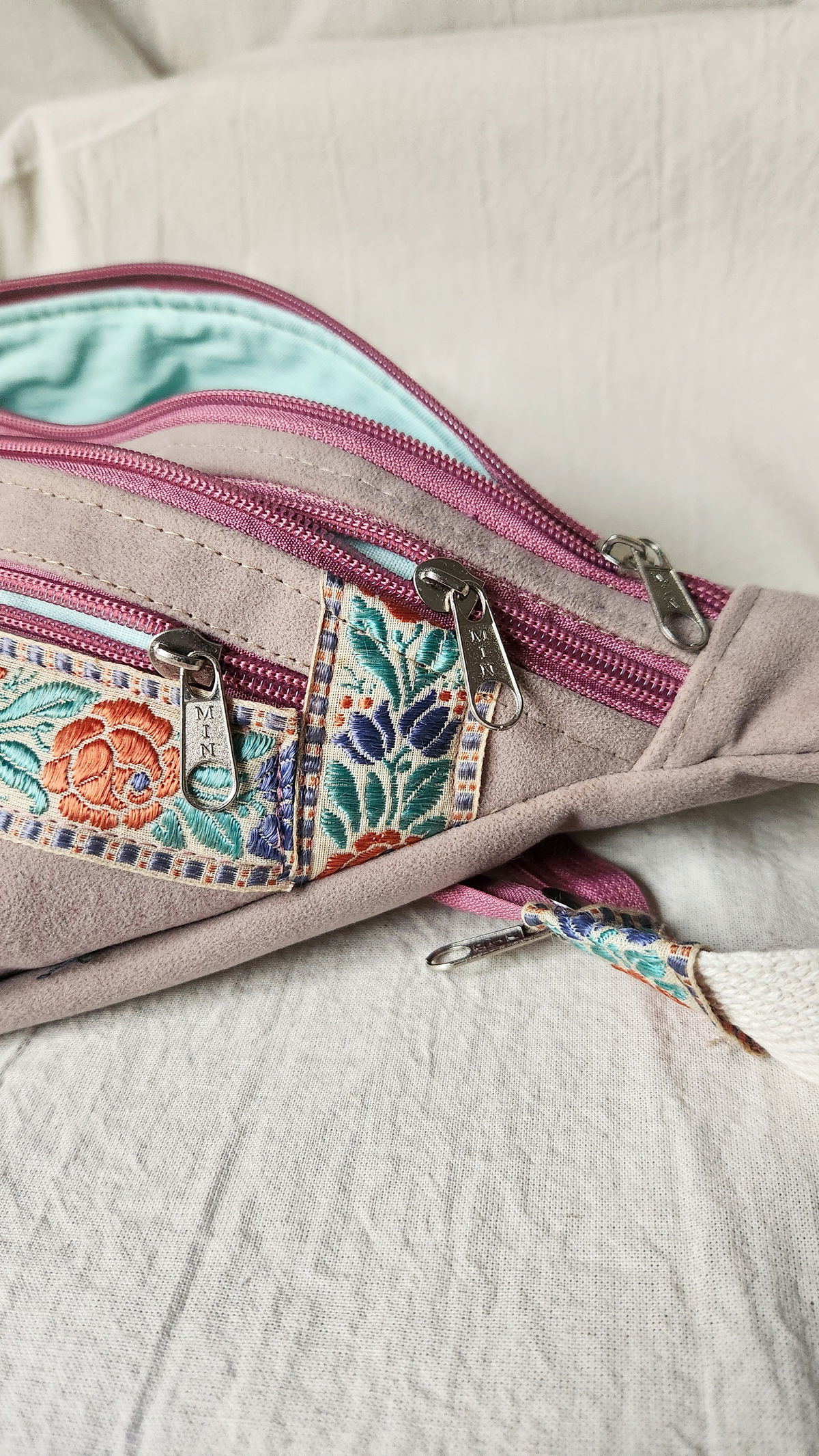 Esta riñonera funcional es ideal para quienes buscan organización sin perder estilo. Confeccionada en símil gamuza suave en tono malva , es cómoda, liviana y perfecta para el día a día.
