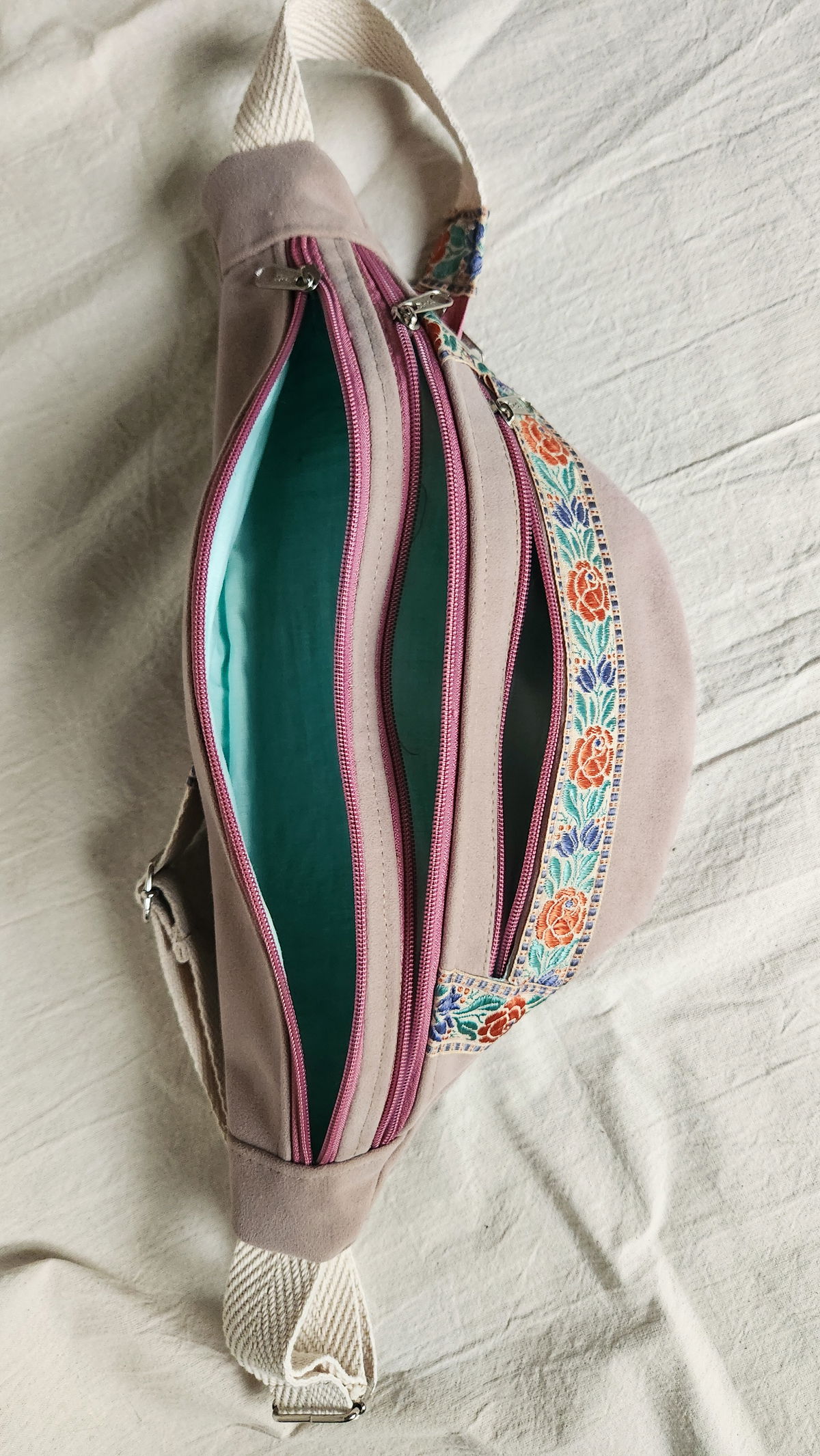 Riñonera Rosa Catarsi – Boho Chic / Galón Floral Vintage