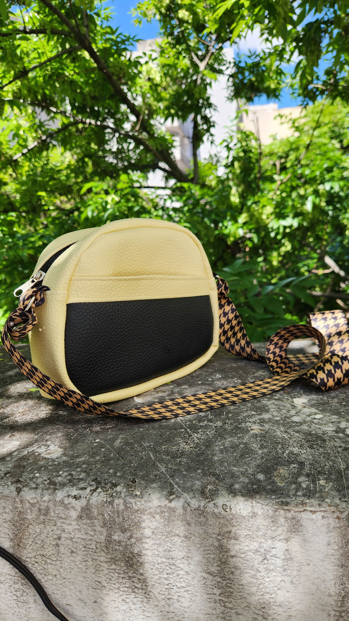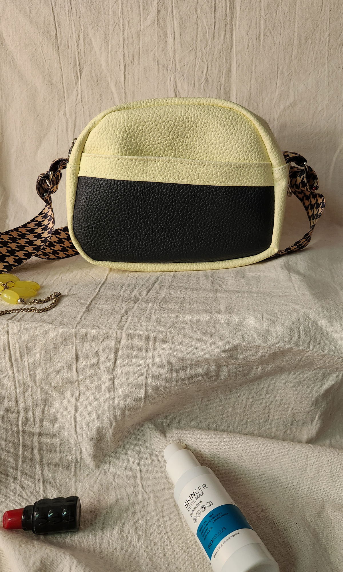 #BandoleraCruzada #CarteraCrossbody #BolsoCompacto #CarteraConBolsilloAsimétrico #BandoleraRegulable #BolsoAmarilloBicolor #CatarsiPragma #BandoleraFuncional