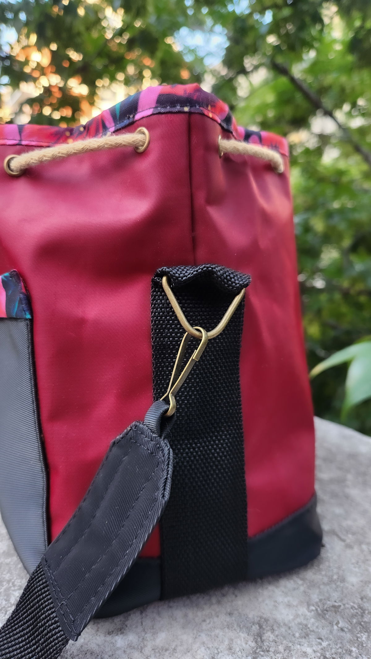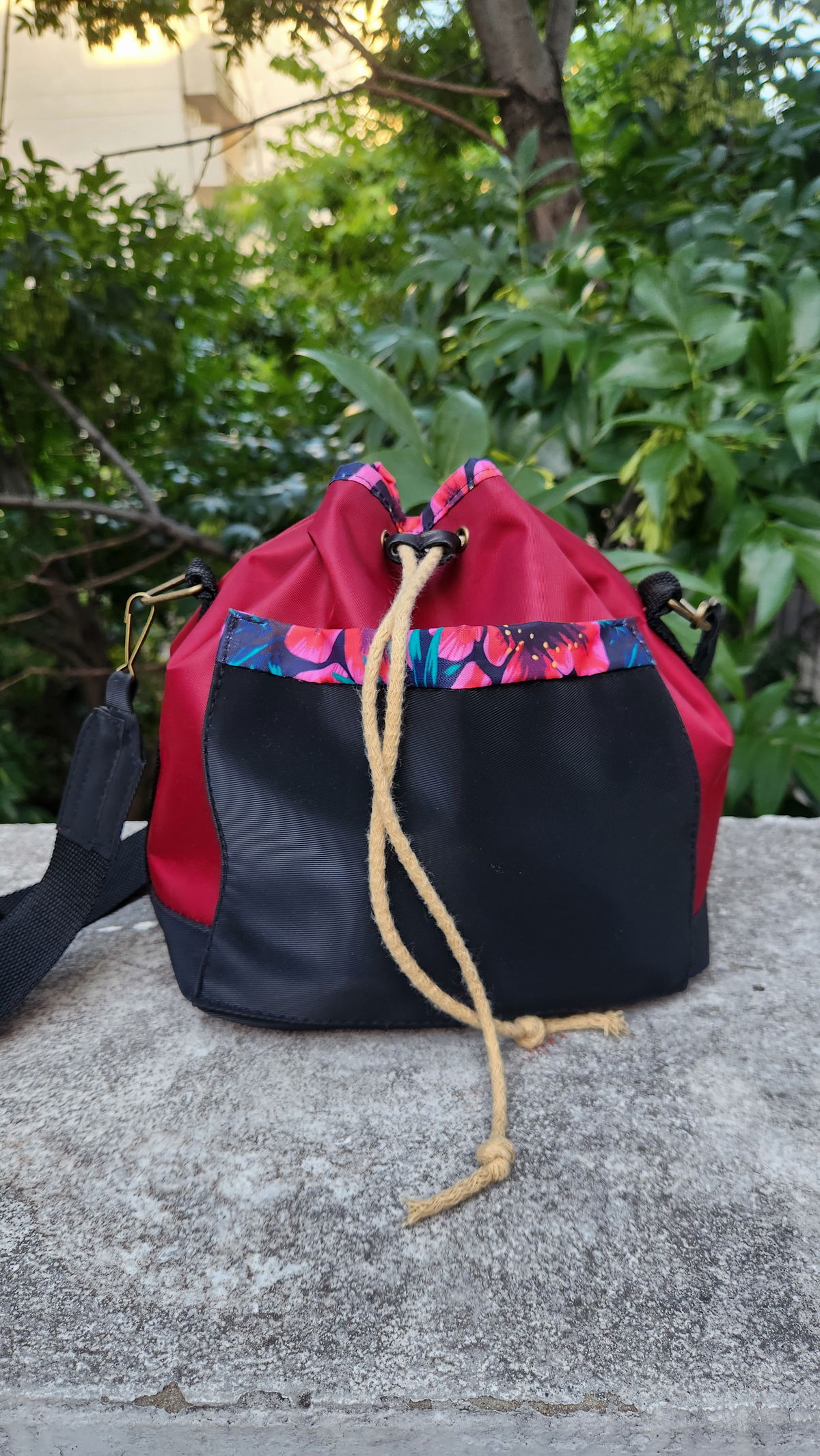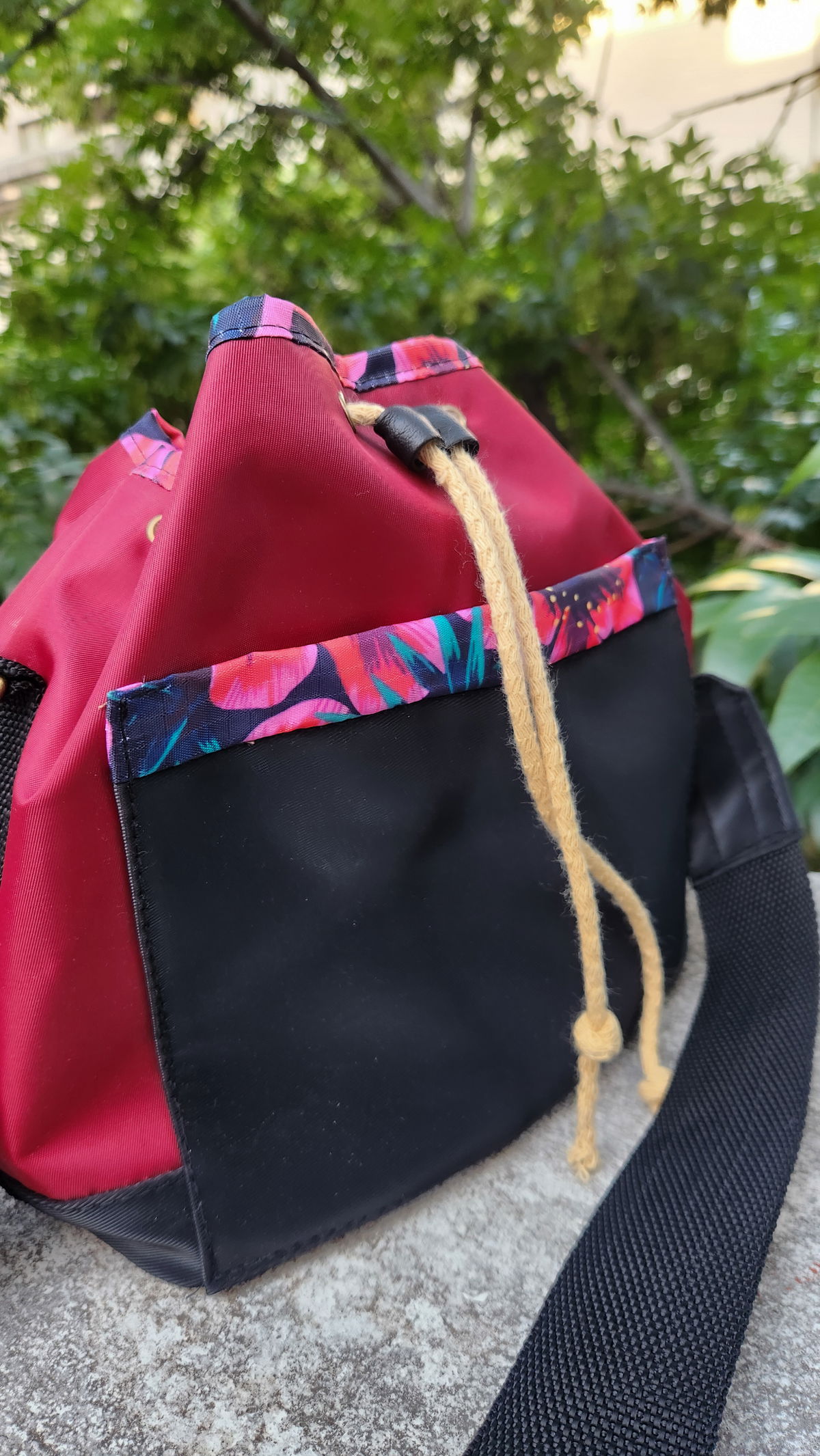 Confeccionada en material andorra con un acabado sedoso de alta calidad. Acentos Vibrantes: Los bordes presentan un motivo de flores vibrantes a tono que aportan energía y diseño al cuerpo del bolso.