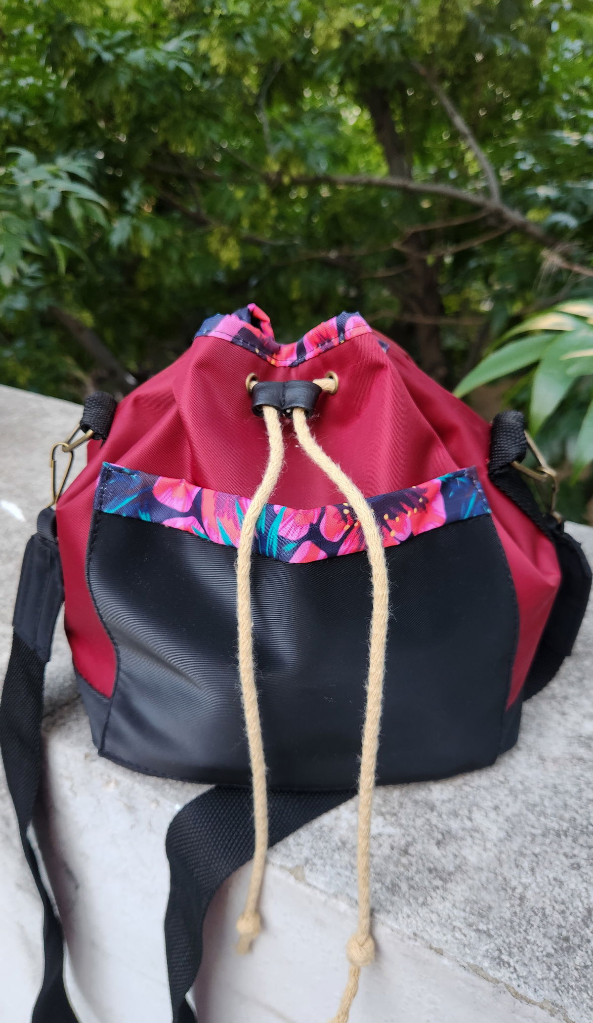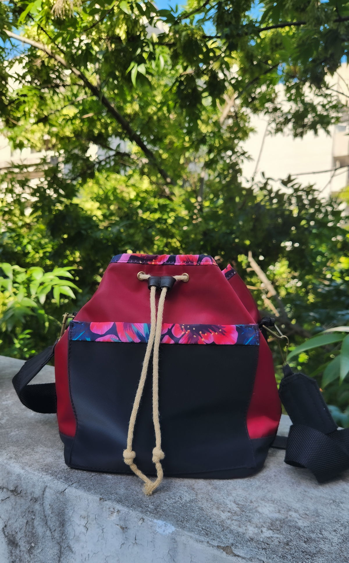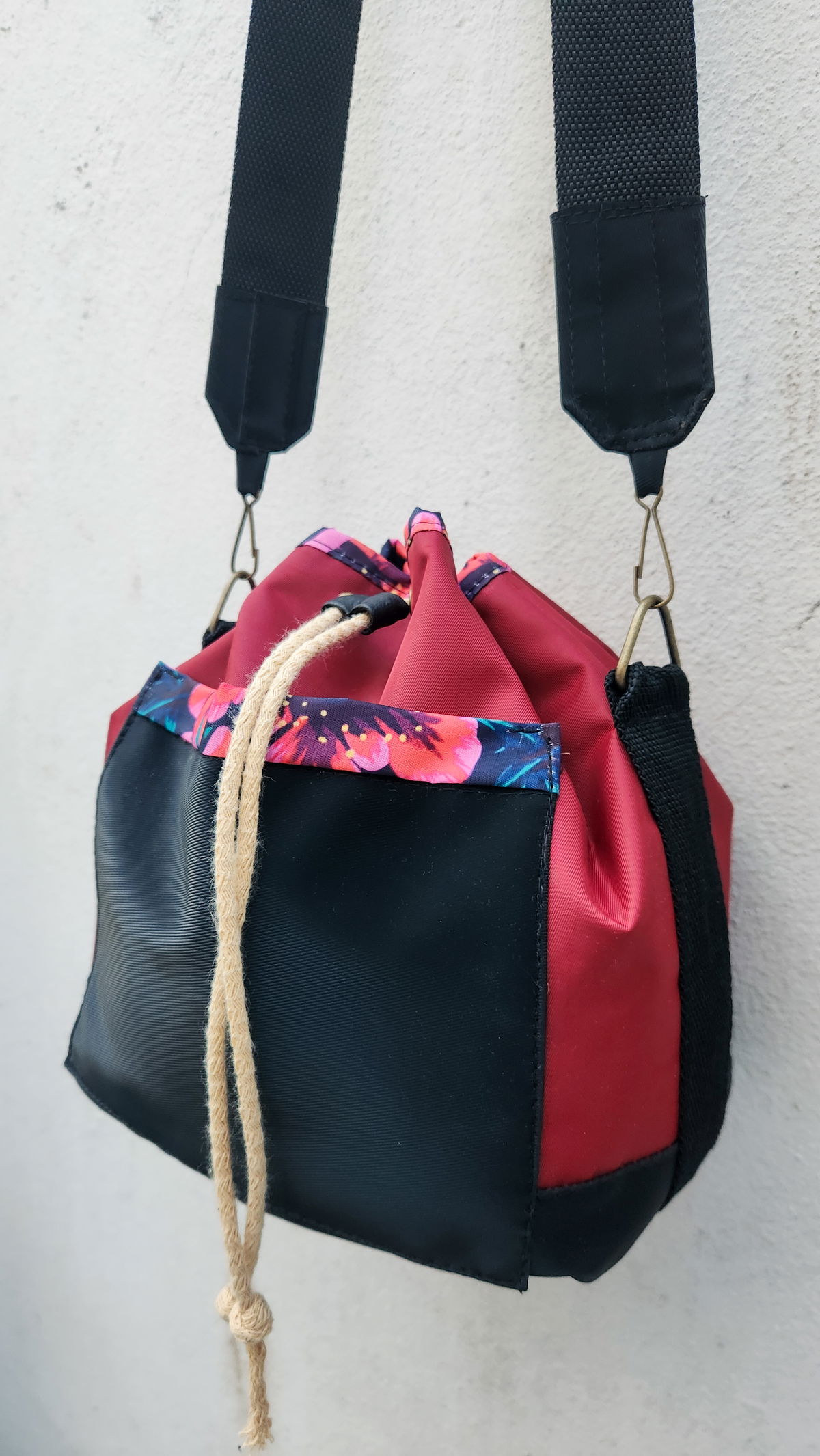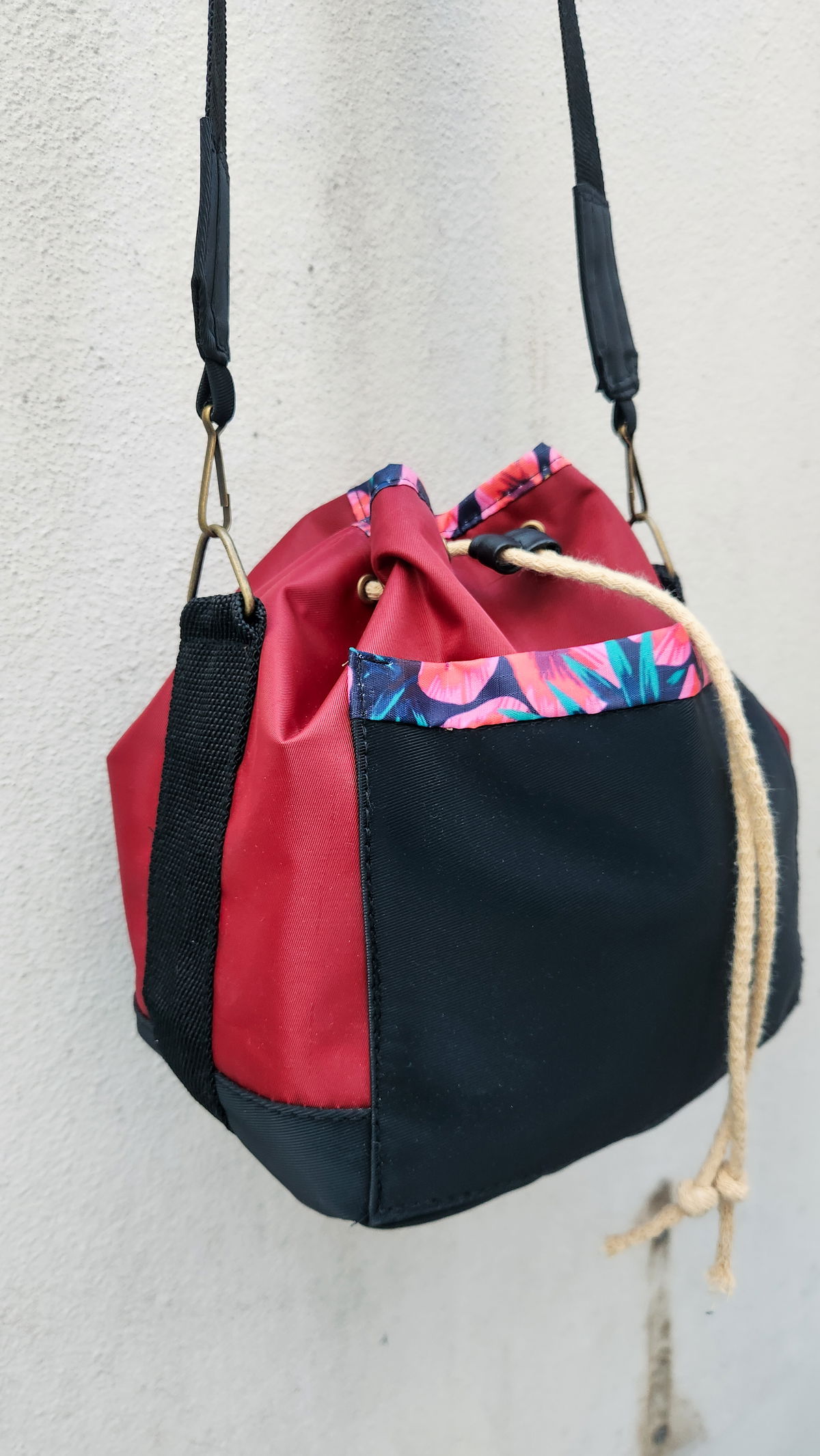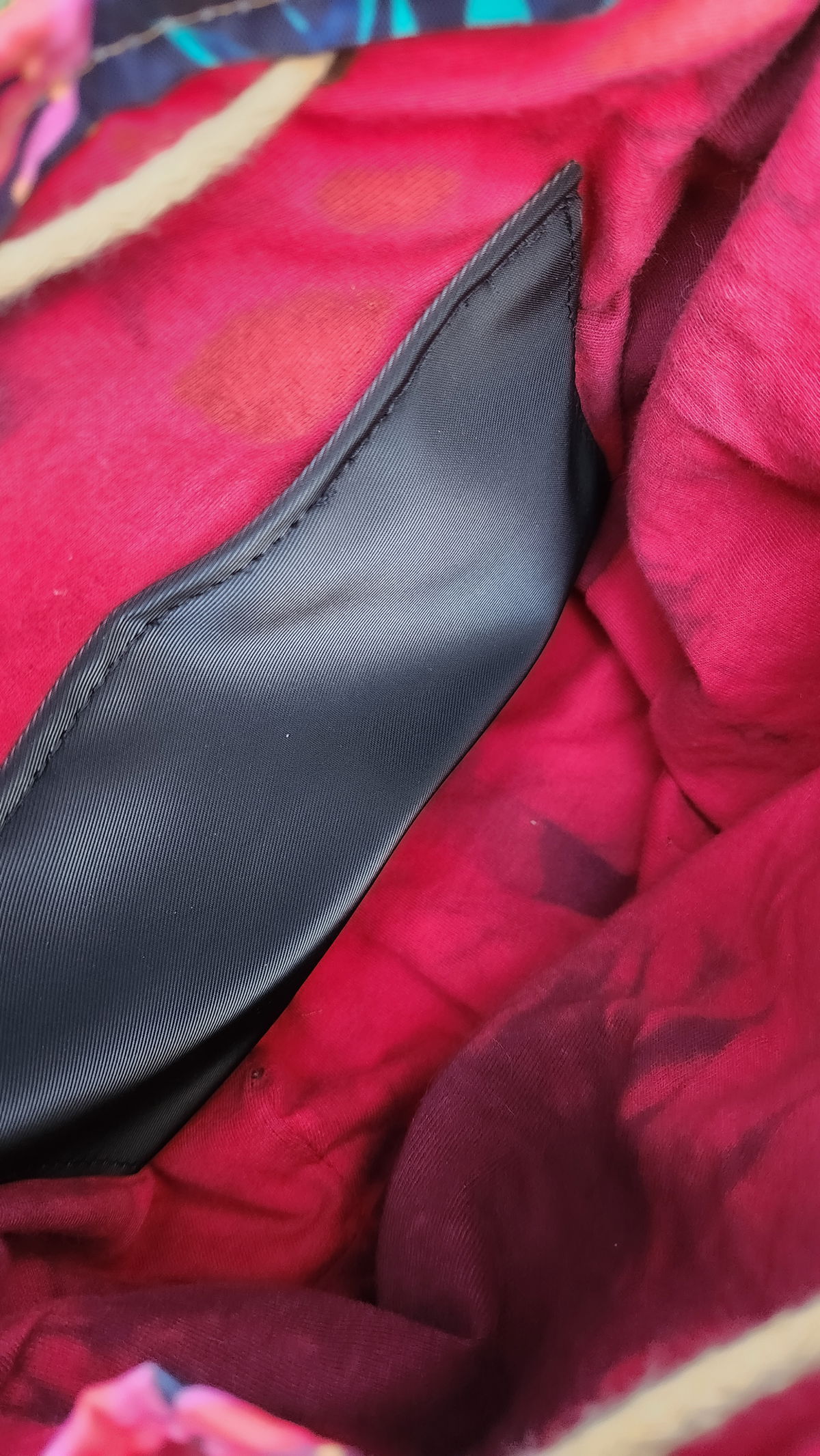 Interior Artesanal: El forro está realizado en algodón con técnica batik en colores rojo y negro, ofreciendo un acabado único