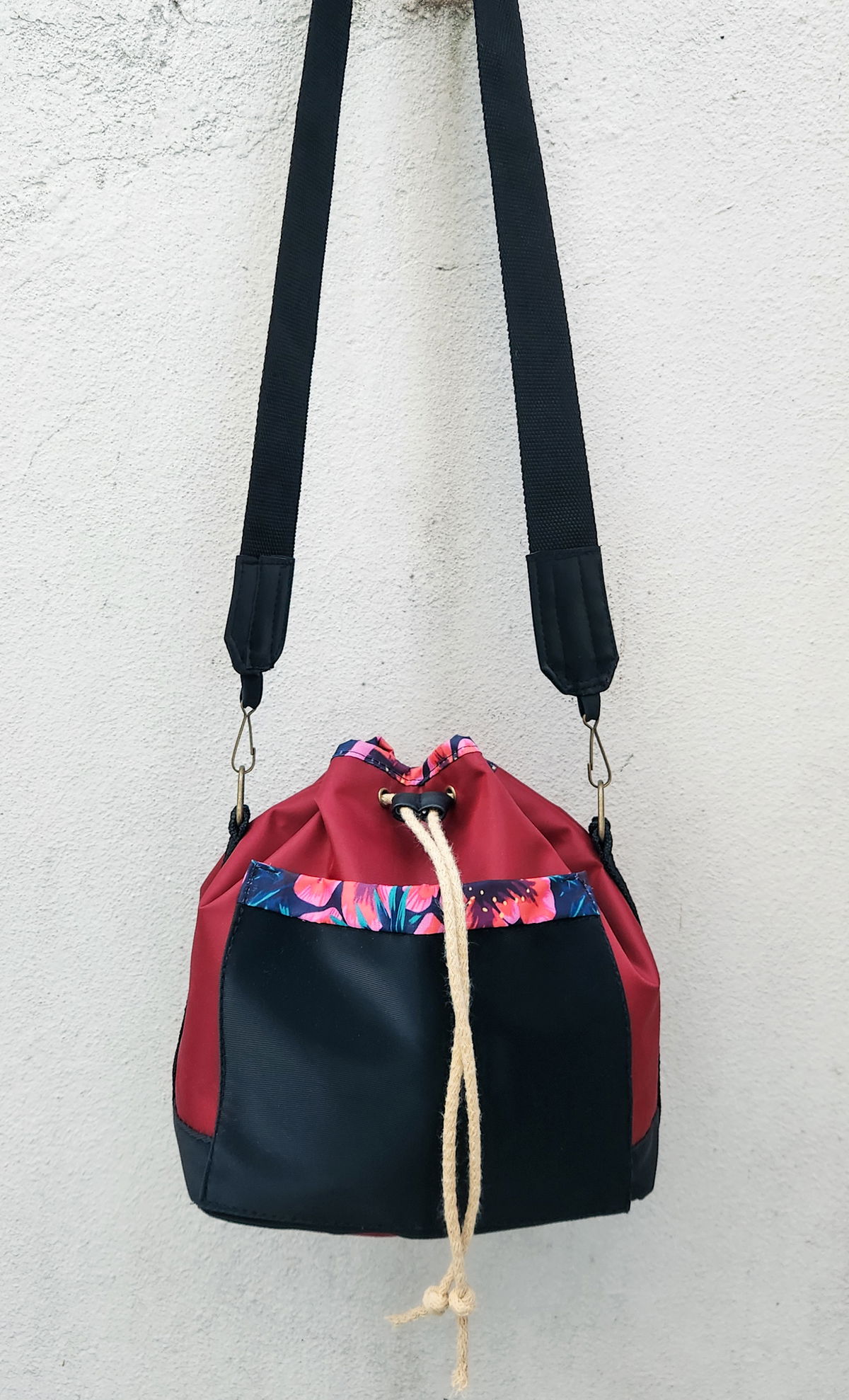 Esta Bucket Bag (bolso tipo bombonera o saco) es la combinación perfecta entre elegancia táctil y colores profundos Diseñada con una silueta clásica y funcional, destaca por su contraste de texturas y su interior estilo bati